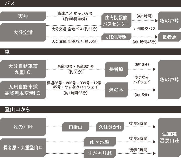 ▶ 会場である法華院温泉山荘へは、コースタイムで2時間程度の登山が必要です。
